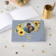Doté d'un thème tournesol avec de délicats accents de feuille d'or et des polices de caractères contre un arrière - plan bleu poussiéreux. Personnalisez avec votre photo préférée pour un souvenir spécial unique pour votre mariage.