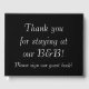 Ce design de livre d'or simple et élégant comporte les messages "Merci pour votre séjour à notre B&B!" et "S'il vous plaît signer notre livre d'or!". Il pourrait être signé par les clients d'un bed & breakfast (B&B). Les messages peuvent être personnalisés.