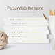 Réservez votre mariage dans un design épuré, moderne et minimaliste, avec une couverture blanche velouté et lisse et de véritables détails en papier peint dans la couleur de papier de votre choix. Huile d'or, d'argent ou d'or rose. Concevez avec la possibilité d'ajouter tout texte que vous aimez sur l'avant, la colonne vertébrale/latérale et l'arrière. Si vous préférez le dos sans texte, laissez les zones de texte modèle correspondantes vides.