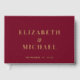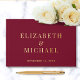Elégant livre d'hôtes de mariage rouge bordeaux avec vos noms dans la grande typographie serif classique et votre date mariage monogrammed dans votre choix d'or réel, argent ou feuille d'or rose. Personnalisez avec votre photo sur le dos et un titre personnalisé sur la colonne vertébrale.