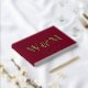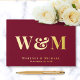 Elégant livre d'hôtes mariage rouge bordeaux avec votre choix d'or réel, d'argent ou d'or rose, vos initiales monogrammes en grande typographie serif classique, vos prénoms et votre date de mariage. Personnalisez avec votre photo sur le dos et un titre sur la colonne vertébrale.