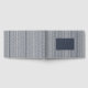 This wedding guest book features a modern and sophisticated design with alternating dark and light blue vertical stripes, creating a rhythmic pattern. The central focus is a solid dark gray-blue rectangle that houses elegant, clean sans-serif typography for the names and date, ensuring clarity and visual impact. The overall aesthetic exudes elegance and precision, making it perfect for couples seeking an understated yet refined touch for their special day.