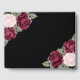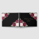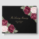 Elégant livre d'or floral noir inspiré de roses roses roses bordeaux et rousses et souffle de bébé sur un arrière - plan noir clair.