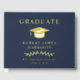 Élégant livre d'invité de la fête de graduation bleu foncé avec une véritable feuille d'or mettant en vedette un grand casquette, "Graduate" et le nom du diplômé, l'école et l'année de classe dans la typographie serif classique. Ajoutez la photo du grad sur le dos.