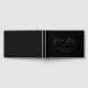 Pour votre réception de mariage, cet élégant livre d'invités de mariage présente un design de typographie de script moderne en or rose simple qui se lit comme suit : "Livre d'invités", ainsi que vos noms et votre date de mariage pour personnaliser sur un arrière - plan noir. La colonne vertébrale a aussi un titre pour vous de customiser. Conçu par Susan Coffey.