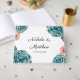 A beautiful floral wedding design featuring watercolor teal roses and soft coral daisies arranged in elegant corners on a clean white background. Perfect for modern romantic weddings, bridal showers, or engagement invitations. This design blends classic charm with a touch of contemporary style, creating a timeless and sophisticated look for your special day.