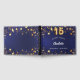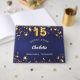Bleu marine tendance, arrière - plan de couleur inégale avec des étoiles faux or. Ajoutez votre nom et votre texte. Le numéro d'âge est écrit avec une police de style ballon. Épine : ajoutez votre texte.