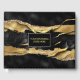 Une belle police jaune doré gras repose contre un rectangle noir bordé de blanc qui est encadré par un fond vibrant à motif marbre or et noir qui a l'air tridimensionnel et est extrêmement élégant et sophistiqué. Ceux-ci sont idéaux pour les lancements de nouvelles entreprises ; les mariages ou toute entreprise qui souhaite conserver un registre des invités assistant à leur spectacle ou événement.