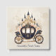 Cet élégant design présente un chariot de conte de fées féminin en bleu marine avec un château princesse derrière décoré de fleurs roses rousses.
