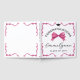 Livre d'or de la graduation féminine avec un grand arc rose au-dessus du nom du diplômé dans un joli script noir. Les coins sont ornés d'autres illustrations d'arcs roses avec de longs rubans pour former un cadre pour la couverture et le dos du livre d'or de la fête de remise des diplômes carré. Un design de girly pour une jeune fille avec du texte personnalisé et sans photo!