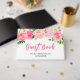 Ce livre d'or de fête de mariage amusant et fantaisiste présente des roses roses aquarelles et du feuillage. Le texte combine une écriture manuscrite et des polices serif pour un look stylé et moderne. C'est parfait pour une fête de mariage rustique de printemps ou d'été.