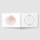 Ce livre d'or est l'accessoire idéal pour votre fête de Quinceañera sur le thème sous la mer ou d'autres fêtes spéciales sur la plage. Il présente des illustrations de coquillages et de perles dans des tons roses et ivoire avec votre propre texte personnalisé sur la couverture et le long de la colonne vertébrale en rose mauve.