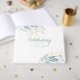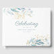 Elégant livre d'hôtes blanc "Célébration de la vie" vert-bleu-or. Élégante, belle police d'écriture.