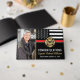 This design features a firemen's flag with black and white stripes, and a thin red line stripe as well. "Congratulations" and a fireman's badge sits above the name of the graduating or retiring firefighter, lieutenant, or chief. Celebrate in style! Customize even further with a photo of the retiring firefighter.
