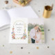Belle bordure en arc d'or avec des parchemins élégants agrémentés de fleurs sauvages pastel boho chic romantique en bleu pâle, rose et jaune. Inclut les champs de texte, le modèle photo et le monogramme derrière. Cette charmante collection est le complément parfait à votre mariage sur le thème du printemps, de l'été ou du jardin.