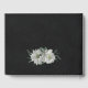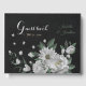 Livre d'hôtes mariage unique avec fleurs blanches romantiques et feuilles verts sur arrière - plan noir. POUR PLUS DE PRODUITS CORRESPONDANTS cliquez sur la collection ci-dessus ou contactez-moi.