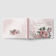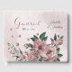 Livre d'or de mariage unique avec des fleurs roses romantiques et des feuilles vertes.