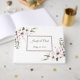 Capturez l'essence de votre histoire d'amour avec notre Livre d'or de mariage Fleurs Blanches – un souvenir intemporel pour des souvenirs chéris et des vœux sincères ! Ce livre d'or est plus que de simples pages ; c'est une toile magnifiquement réalisée qui déroule l'histoire de votre journée spéciale. La couverture blanche classique préfigure le délicat motif floral, créant un arrière-plan élégant pour les vœux de vos invités.