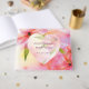 Floral Heart Pink Dewdrops livre d'hôtes Mariage. Une photo plus légère découpe coeur sous le texte. Modifiez ceci pour n'importe quelle occasion. Modifiez-le pour apporter des modifications et des styles. Tout est personnalisable pour ajouter vos propres informations.
