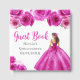 This quinceanera guest book features a beautiful princess in a hot pink ball gown with floral arrangements. This is perfect for a quinceanera birthday party.