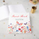 Beautiful birthday party guestbook with colorful flowers in pink, purple and orange, butterflies and foliage. Perfect for a spring or summer birthday party. The words can be changed to suit your own details or requirements.