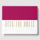 Cette élégante décoration de vacances présente un bloc de demi-couleur rouge bordeaux contre un arrière - plan blanc croustillant ci-dessous. Le texte, de couleur dorée, haut et mince, dans le bloc de couleur blanche épelle "DECK THE HALLS" et peut être personnalisé.