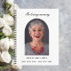 Un livre d'hôtes pour un service commémoratif ou funéraire. Un arrière - plan blanc classique, texte noir Personnalisez et ajoutez une photo à l'intérieur de l'arche, nom et dates.