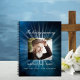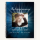 Un livre d'hôtes pour un service commémoratif ou funéraire. Un ciel bleu comme arrière - plan. Des rayons de lumière blanche derrière la photo. Personnalisez et ajoutez une photo, un nom et des dates. Lettres blanches.