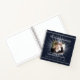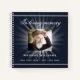 Un livre d'hôtes pour un service commémoratif ou funéraire. Un arrière - plan classique bleu foncé, un cadre faux argent sur le devant. Soleil, rayons étoiles derrière la photo. Personnalisez et ajoutez une photo, un nom et des dates.