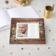 Une célébration de vie personnalisée avec photo, livre d'or funéraire avec verdure sur fond de panneaux de bois rustique. Conçu par Thisisnotme©