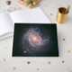 Cette conception est basée sur une image de haute qualité de la galaxie en spirale barrée M83; elle a été prise par le télescope spatial Hubble. Les nuances brillantes de magenta et de bleu dans l'image signifient que la galaxie est en flammes avec la formation d'étoiles. La galaxie, également connue sous le nom de Southern Pinwheel, se trouve à 15 millions d'années-lumière dans la constellation Hydra.