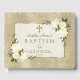 Carte Roses blanches. Il présente une forme blanche semi-transparente avec un cadre de parties scintillant en faux or, de magnifiques roses d'aquarelle crème blanche, sur un arrière - plan parties scintillant en faux or. Utilisez l'outil Personnaliser pour ajouter vos informations. Pour les articles correspondants, veuillez visiter ma collection de célébrations Baptême/Christening .