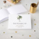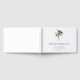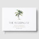 Petit livre d'hôtes de mariages tropicaux en feuille d'or avec illustration d'un palmier d'aquarelle unique et lettrage en feuille d'or.