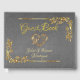 Gold Heart on Grey with Gold Border Guest Book features an intricate gold scroll heart and gold leaves border on a grey background. Room to place the couple's name on the front and names and date on the spine. (Ribbon is simulated in the artwork). Designed to coordinate with the "Elegant Marble, Gold Frame & Heart" Wedding Collection. To change details, click «Personalize». To move the text or change the text size, font, or color click «Click to customize further»