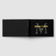 Livre d'or de mariage gay monogrammé en noir avec votre bientôt à être partagé initial en gris foncé contre un arrière - plan noir avec vos noms et date de mariage imprimé sur le dessus en feuille d'or séparé par un séparateur en arc-cravate en or. Livre d'or, noir et gris gay mariage avec votre monogramme un arc-cravate doré, et vos noms dans un script rétro. Livre d'or LGBTQ mariage pour deux marionnettes avec du texte en feuille d'or et un séparateur en cravate d'arc avec votre monogramme en gris foncé en dessous. Livre d'or Masculine mariage pour un mariage gay personnalisé avec un monogramme gris foncé et un texte personnalisé en feuille d'or.
