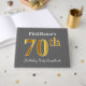 Ce livre d'or est orné du numéro ordinal "70th" avec un aspect imitation or. Il comporte également un nom customisé et un arrière - plan gris (gris). Il pourrait être utilisé à une fête d'anniversaire pour quelqu'un qui célèbre son soixante-dixième anniversaire. [~Z0000193]