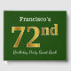 Livre D'or Green, Faux Gold 72e fête d'anniversaire + Nom per
