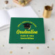 Ce livre d'or moderne vert et jaune personnalisé pour la fête de fin d'études supérieures porte votre nom de lycée ou de collège pour la classe de 2025. Customisez avec votre année de graduation sous l'écriture chic manuscrite et le casquette noir de grad pour un grand cadeau de maintien de diplômes personnalisés.