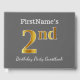 Ce livre d'or est orné du numéro ordinal "2e" avec un aspect faux/imitation or. Il comporte également un nom customisé et un arrière - plan gris (gris). Il pourrait être utilisé à une fête d'anniversaire pour quelqu'un qui célèbre son deuxième anniversaire. [~Z0000193]