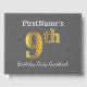 Ce livre d'or est orné du numéro ordinal "9th" avec un aspect faux/imitation or. Il comporte également un nom customisé et un arrière - plan gris (gris). Il pourrait être utilisé à une fête d'anniversaire pour quelqu'un qui célèbre son neuvième anniversaire. [~Z0000193]