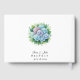 This guest book is shown in a lovely hydrangeas floral print on the front and back of the book. Personalized names and wedding date shown in a black color. Backside has a same hydrangeas image along with personalized names and date near bottom.