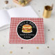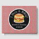 Amusant, design mariage décontracté pour le mariage barbecue décontracté. Le design comprend un arrière - plan en plaid en vichy rouge et blanc. Au centre se trouve un cercle noir avec garniture blanche. Au centre du cercle noir se trouve une image de hamburger délicieux. Au-dessus du hamburger se trouve du texte en craie blanche amusante comme une police qui dit I Do's & BBQ! Sous le hamburger se customise le nom du couple et la date du mariage dans la même police blanche. C'est un design mariage si amusant pour la réception de mariage jardin BBQ. Des invitations assorties, des envois postaux et des articles en papier sont également disponibles pour compléter ce thème amusant I Do's et BBQ !