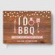 Cette conception rouge brun rustique I Do BBQ présente un fond en bois rustique avec des guirlandes lumineuses et des graphiques de grill. Cette conception est parfaite pour les fêtes de fiançailles et les barbecues de shower pour couples.