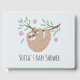 Ce livre d'or pour fête de bébé, magnifique et féminin, présente un beau paresseux endormi dessiné à la main avec des fleurs et des feuilles. Ce design charmant comprend également un espace pour ajouter le nom de la mère et une date. Le design parfait sur le thème de la jungle et de la faune pour votre fête de bébé !