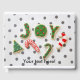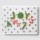 Envoyez vos salutations de vacances en style avec ces biscuits de Noël de joie sur un arrière - plan blanc pois.