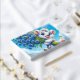 Un mignon chiot tacheté porte joyeusement un grand bouquet de fleurs de maïs bleues vibrantes sur un champ lumineux et ensoleillé. Le ciel bleu clair et les fleurs sauvages en fleurs créent une scène joyeuse et fantaisiste, parfaite pour une illustration qui fait chaud au coeur.