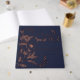 Cet élégant livre d'hôtes est orné d'une couverture bleu marine ornée de fleurs dorées, de motifs en feuilles et de papillons. La combinaison du bleu marine et de l'or crée une esthétique sophistiquée et romantique, parfaite pour capter les messages sincères des invités.