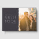 This wedding guest book features a warm and inviting photo design, capturing the essence of celebration with its soft golden hues and intimate moment. The layout is elegantly simple, combining a stylish black cover with clean white typography that adds sophistication to the overall look. Perfect for commemorating your special day, this guest book invites guests to leave heartfelt messages in an atmosphere of joy and love. Its modern yet timeless aesthetic makes it a cherished keepsake for years to come.