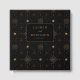 This elegant wedding guest book features a sophisticated dark navy background adorned with intricate gold stars and snowflake motifs, creating a luxurious and festive atmosphere. The central design includes a gold-outlined frame with customizable text fields for names and date, set in an elegant serif font that adds a touch of classic charm. Perfect for capturing well-wishes at a special occasion, the detailed yet minimalist style blends traditional symbols with modern aesthetics, making it ideal for weddings or formal events. The overall mood is one of celebration and anticipation, enhanced by the rich color palette and meticulous composition.
