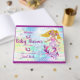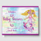 Bulles arc-en-ciel magiques avec 3 petites filles bébé sirènes à choisir pour une fête baby shower ( Merci dit la cigogne à l'arrière )